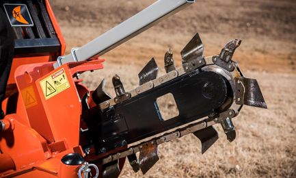 - Standard outboard bearing support stabilises the headshaft and auger, for reliable productivity trench after trench.